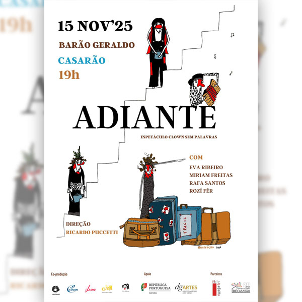 ADIANTE é um espetáculo de clown contemporâneo luso-brasileiro que nasce da inquietação de quatro atrizes-palhaças Eva Ribeiro, Miriam Freitas, Rafa Santos e Rosi Fehr e… Continue a ler »Adiante